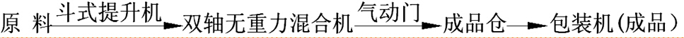 節(jié)能型生產(chǎn)線,由脈沖除塵器、斗式提升機、雙軸無重力混合機(含飛刀組)、成品倉(含二次攪拌)、自動定量包裝機(閥口式&敞口式)、鋼架平臺、空壓機、氣路系統(tǒng)、電氣控制柜等組成的中型流水作業(yè)體系。