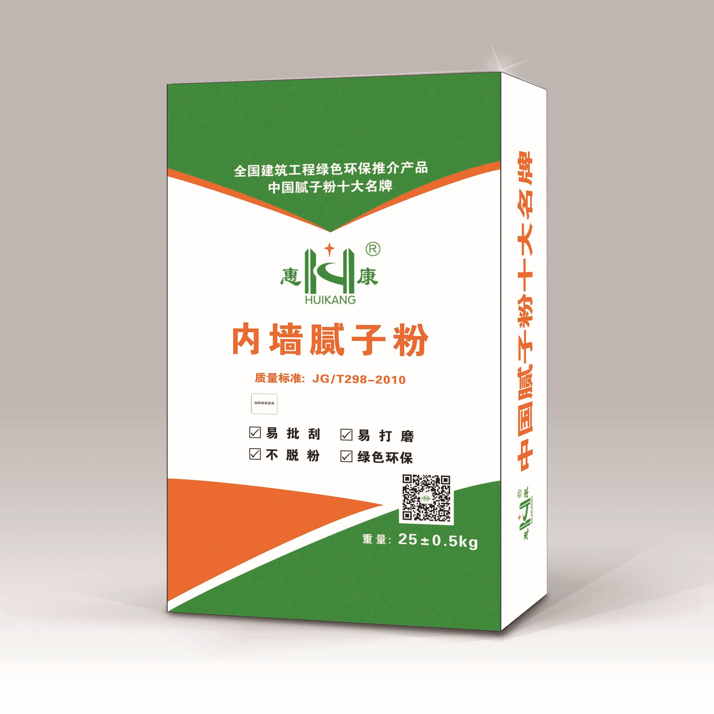 本產品達到超過國家標準R型JG/T3049-1998加水即可使用,無需再加膠水,附著力強,易批刮,易打磨,保證打磨后不脫粉、不卷皮、不龜裂、不鼓泡,適用內墻滿批。