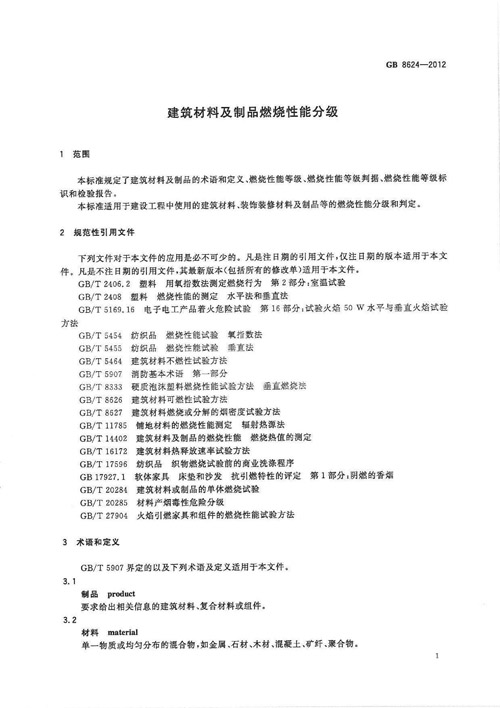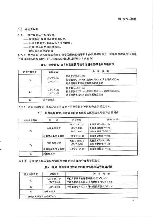 《建筑材料及制品燃燒性能分級(jí)》