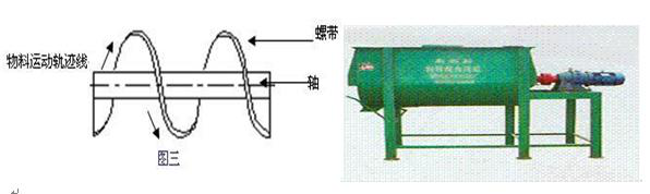 臥式單軸單螺帶混合機(jī)最典型的代表就是砂漿混合機(jī)(圖三),由于單螺帶推動(dòng)物料向一個(gè)方向運(yùn)動(dòng),混合效率較低,殘留量較大,適合不加添加劑的膏狀水泥砂漿的混合,不適合膩?zhàn)臃郏獗厣皾{干混料等粉體材料的攪拌混合。