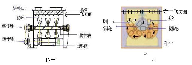 性能特點(diǎn):減速機(jī)帶動(dòng)雙軸的旋轉(zhuǎn)速度與槳葉的結(jié)構(gòu)會(huì)使物料重力減弱 ,隨著重力的消失,各物料存在顆粒大小、比重懸殊的差異在混合過(guò)程中消失。激烈的攪拌運(yùn)動(dòng)縮短了一次混合的時(shí)間,更快速,更高效.(圖十)。