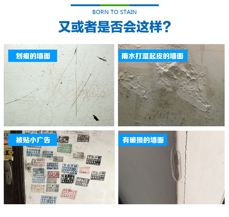 + 詳情你家是否也遇到這樣的問(wèn)題:廣告印章、裂縫脫落、小孩兒畫(huà)花、狗狗拋墻、滲水脫落、臟污污漬、釘眼洞孔、墻面裂縫。我們的膩?zhàn)舆m用:起皮空鼓、狗狗拋墻、破損脫落、發(fā)黃臟污。遇到這些問(wèn)題膩?zhàn)臃凼┕げ襟E:1、使用鏟刀將起皮墻面清理干凈,直到平整不松動(dòng)脫落即可(基面需保持…