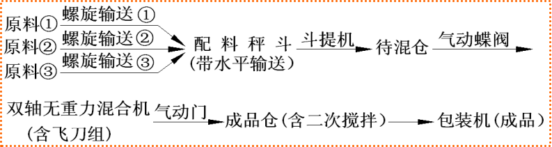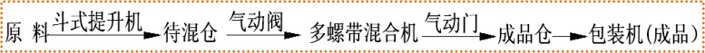 半自動生產(chǎn)線,是在節(jié)能型生產(chǎn)線基礎(chǔ)上增加待混倉改進(jìn)而成。主機由雙軸無重力混合機換成單軸多螺帶混合機。其它配套設(shè)備有:斗式提升機、成 品倉(二次攪拌)、自動定量包裝機(閥口式&敞口式)、鋼架平臺、空壓機、氣路系統(tǒng)、電氣控制柜等。