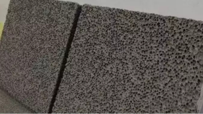 這種發泡水泥板,拿在手里只掉渣,輕微一掰就斷,很多板材還沒運到工地就已經破碎不堪,怎么能上墻?