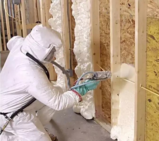 最后一個被停止受理的發泡聚氨酯。聚氨酯可以理解為兩種類型,一種是生產成板狀的硬泡聚氨酯復合板,另一種就是現場機械噴涂發泡聚氨酯,如下圖所示: