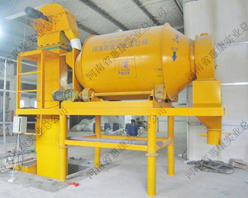 備主機(jī)采用無(wú)軸滾筒式玻化微珠輕質(zhì)砂漿專用混合機(jī),筒體轉(zhuǎn)動(dòng),翻轉(zhuǎn)攪拌,加上獨(dú)特設(shè)計(jì)的內(nèi)部導(dǎo)向板,能很大程度保證顆粒料在原始狀態(tài)下均勻混合,把物料的